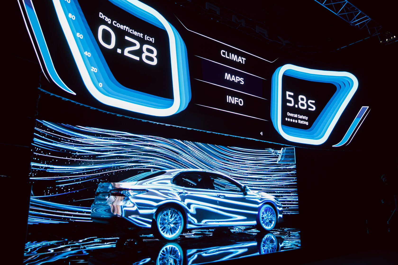 Старая мечта использовать инновационные технологии на все 100%. Вау-эффект, когда из высокотехнологичного ролика вдруг на сцену выезжает реальный автомобиль. Это Toyota Camry нового поколения!